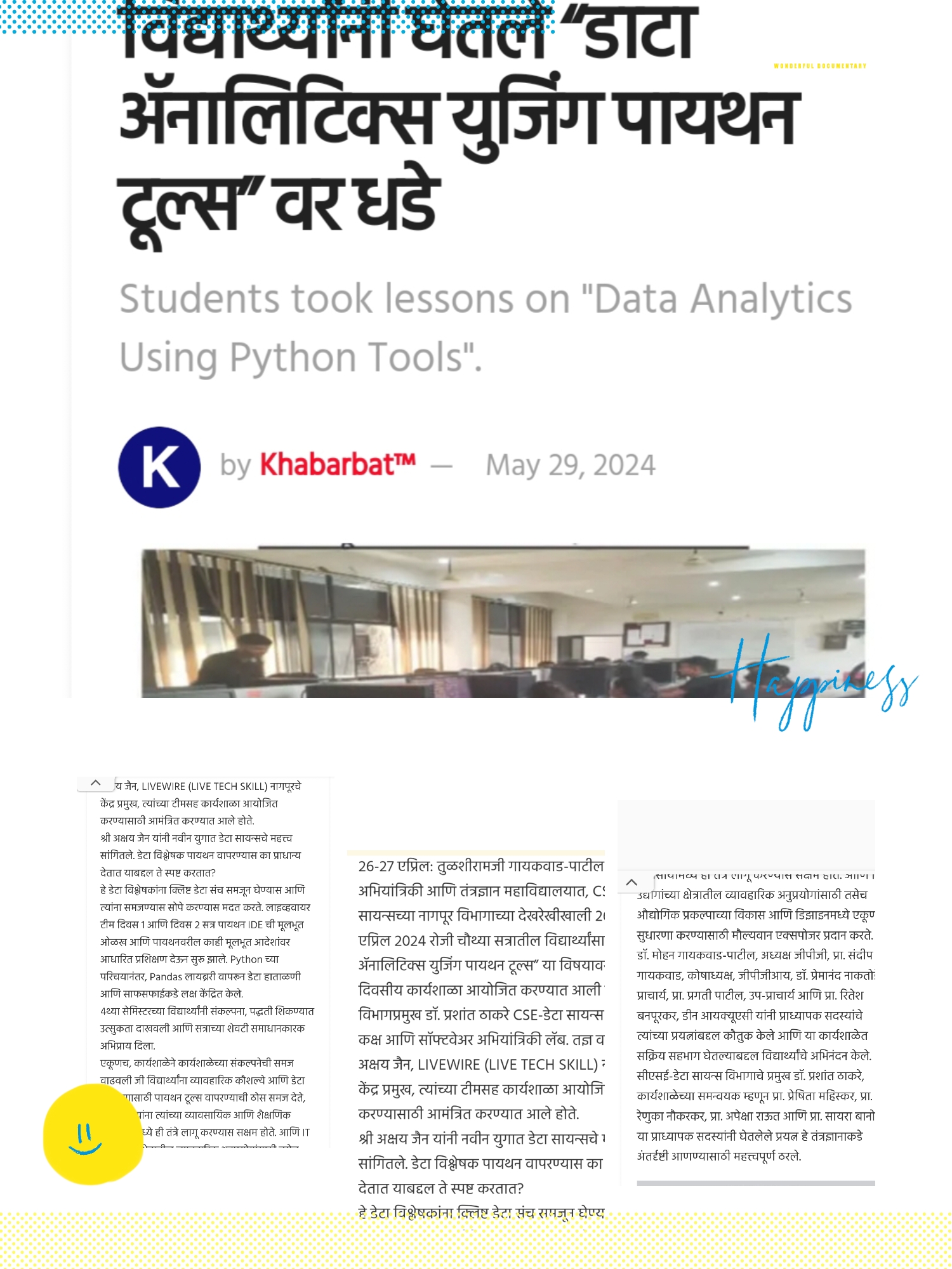 | Tech –Kruti 2024 | 01-Mar-24 | Mr. Vijay Chandak, | Technical Architect at Tech Mahindra, Nagpur | 120 | PO1,PO2,PO3, PO4,PO7,PO11 |