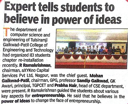 | 3 | Industrial Visit - "RCOEM - Tata Technologies LTD. CIIT Nagpur" |
