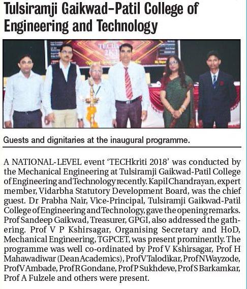 → The Department has its own departmental Library with a rich collection of books to serve as a ready source of information. With a team of experienced & well-qualified faculty members, the department moulds its students according to the present industrial requirements in various domains such as production, material science, design, ergonomics, so as to provide better employment opportunities. The department of Mechanical Engineering in TGPCET possesses a faculty team of experienced & well-qualified professors, well acquainted with deep subject knowledge, commitment to disseminate quality & value-based education in technical subjects. All faculties work hard on student to meet the requirement of market and groom the student to be job friendly.